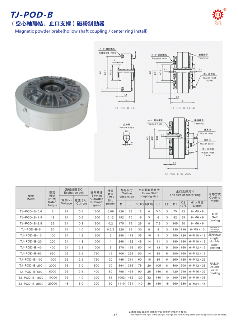 POD-B磁粉制動(dòng)器空心軸類別:磁粉制動(dòng)器